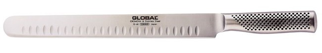 - 30cm Fluted Long Slicer Global Knives are razor sharp & exceptionally light. Knives from Global are unique in the world of fine cutlery. High tech from tip to handle. The 2 most innovative features of Global knives are their edge & the way they are balanced. The most important feature of any knife is its edge & the Global edge is truly its signature Features