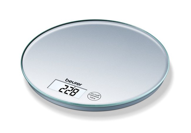 With its elegant round shape, the kitchen scale sets itself apart due to its flat design and modern touch key operation. The glass surface is easy to clean. Specifications:
