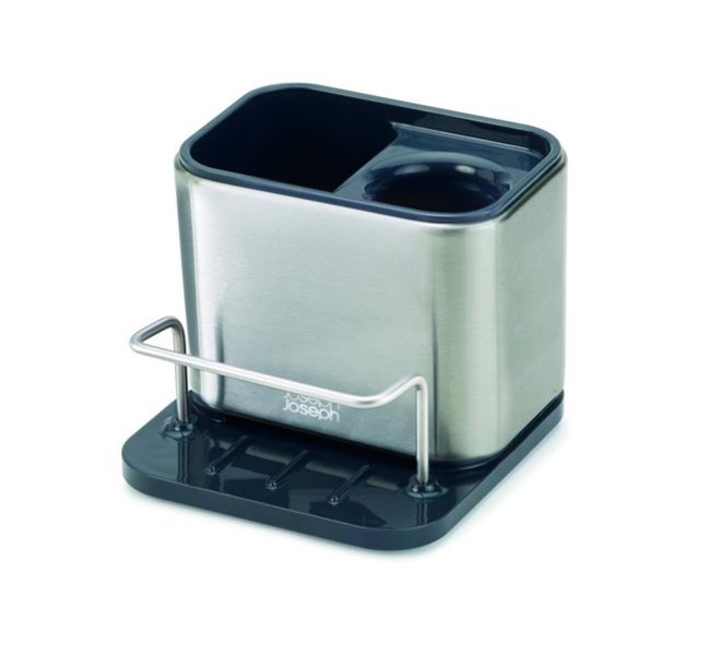 - Surface Compact Stainless Steel Sink Tidy A clever accessory for storing your sponges, washing brushes, dishcloths and washing up bottles neatly beside your sink with separate compartments for each. Sloped base allows water to drain out of sight Features: