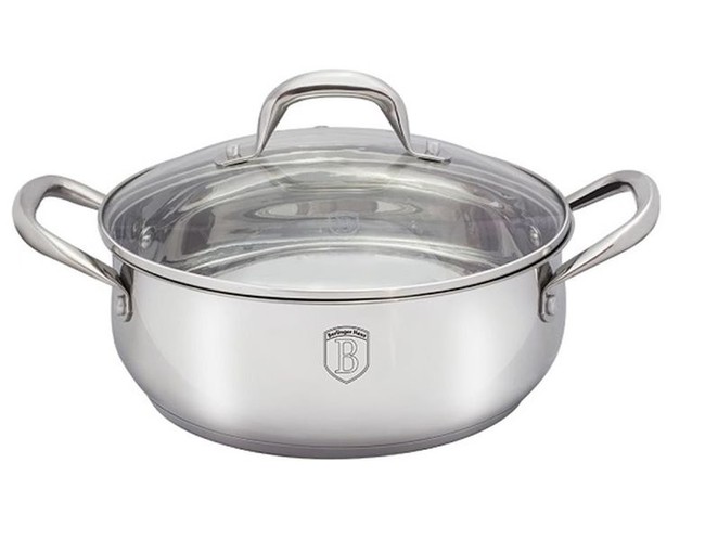 Berlinger Haus was born in the heart of Europe, in Hungary Enjoy the Fine Art of Cooking Inspired by the great Europe kitchens, Berlinger Haus began making professional cookware almost 10 years ago Constructed of the finest materials available to perfectly perform all of the classic cooking techniques, Berlinger Haus cookware continues a long tradition of excellence Our commitment to quality and innovation continues with our Marble Coated Cookware, designed to meet the demands of gourmet chefs everywhere Berlinger Haus Stainless Steel Shallow Pot Compatibility: Works on gas, electric, glass, ceramic, halogen, induction etc. Oven Safe! Features: