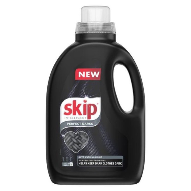 Skip perfect darks auto washing liquid 1.5L with fibre care technology smoothens fabric surfaces by removing bobbles and loose fibres. Skip laundry detergent protects the fabric from everyday wear and tear to keep clothes looking like new for longer. Skip washing liquid can help prevent fading of clothes so that they appear more vibrant for longer. Dirt and stains are removed without damaging the fibres, so you can wear your garments confidently for longer. Specification: