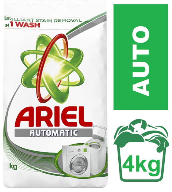 - Ariel's concentrated power cleans deep down in the fibers to lift off and remove dried-in stains in just 1 wash What's in the box 4Kg Auto Washing Powder