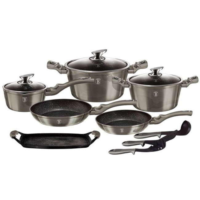 Berlinger Haus Marble Coating Cookware 12 Piece Set - Carbon Metallic...