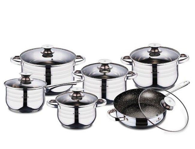 Blaumann 12-Piece Stainless Steel Jumbo Cookware Set With Marble Coating Fry Pan Bl-3167