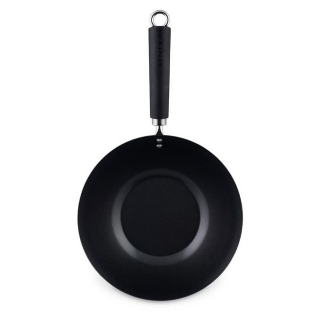 - A lightweight carbon steel wok finished with a three layer non-stick coating designed for stir-frying at high temperatures and with less oil. Coated inside and out to provide a robust sealed coating for long-lasting endurance