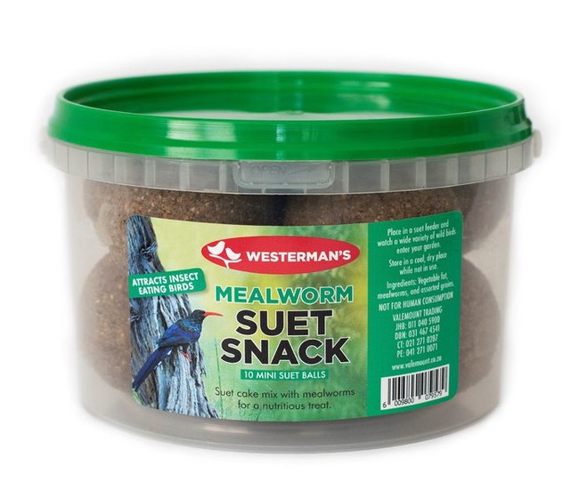 Product Information 10 Mealworm suet balls included in each tub. Not for human consumption. EAN: 6009800079579