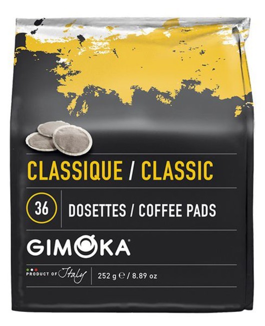 Gimoka - Classic - Senseo Coffee machine compatible Paper Coffee Pods - 100% biodegradable !A sweet and balanced blend. Its aroma is a harmony of sensations leaving us with notes of dark chocolate, caramel and citrus Full-bodied coffee What's in the box 36 pods per package (7g per pod )
