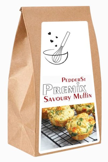 Product Information Pepper St. Basic Savoury Muffin Premix - 350g There's nothing' to making this Premixes Muffins. Makes 12 muffins Just add 2 Eggs, 75 ml Oil, 250 ml Milk What's in the box 1 X pouch