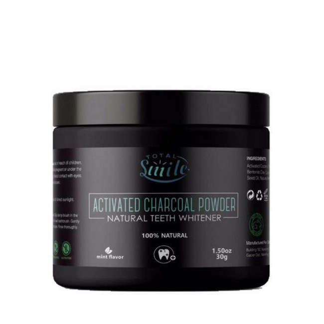 Made from the highest-quality coconut shell, Total Smile activated charcoal formula is safe to use for whitening your teeth, while being friendly on your gums. Total Smile's naturally whitens your teeth, no peroxides included in the ingredients , but through the power of Activated Charcoal, nature's best purifies and detoxifiers. Total Smile unique formula whitens your teeth over time, and helps remove stains from a number of causes: coffee-stains, wine, cigarettes, and more