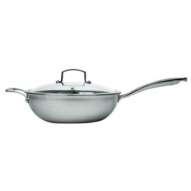 The MasterPan chef's series 30cm Wok is built to benefit your relationship with food. Its ingenious 3-ply construction (stainless/aluminum/stainless) lasts significantly longer than your usual non-stick cookware, and can be used worry-free on any heat source, induction included, with mouth-watering results. This superior combination cooking surface boasts intelligent raised Pixels that rises above its superior non-stick surface—it is specially designed to balance heat distribution flawlessly throughout the entire pan, so you can sear and Brown foods without the hassle of it sticking to the surface! the Flag non-stick Swiss technology premium coating is PFOA, lead, cadmium, and heavy metal free, and 100% scratch-resistant, so go ahead and use those metal utensils. The pan also features an ergonomically designed handle and is dishwasher safe. State of the art: textured steel pixels rise above the non-stick to create a scratch resistant surface and allow for perfect cooking every time 100% scratch resistant: cooks like Stainless Steel with the advantages of non-stick clean-up; metal utensil safe-won't scratch or alter cooking surface 3-ply construction: stainless/aluminum/stainless; suitable for all cooktops including induction Oven safe; PFOA, lead, cadmium, & heavy metal free coating; Longer lasting than typical non-stick; dishwasher safe Limited Lifetime warranty 3-PLY Stainless Steel