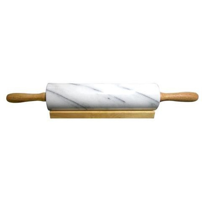 This exclusive roller pin comes with a luscious marble body, complimented beauitfully with its wooden arms on a matching wooden stand. Bound to look great in any kitchen, you will want to keep it out on the counter instead of buried away in a draw. -Marble roller -Wooden handles -Dimensions: 6.4 x 48.8cm -Wooden stand What's in the box 1 x Rolling Pin