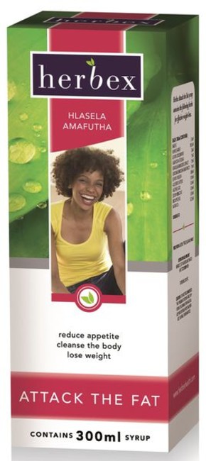 Herbex attack the fat is a powerful herbal syrup that will help you lose weight. A few teaspoons a day will help you look your best and boost your confidence. Benefits: - Buchu: Buchu will assist in efficiently ridding the body of water weight. It will also help relieve gas and bloating.Buchu will assist in normalising blood sugar levels - Green Tea: Green Tea boosts metabolism and helps burn fat. It contains ingredients that will reduce the appetite and stimulate the central nervous system - Citrin: Citrin satisfies the body's demands for energy and causes the liver to signal to the brain when enough food has been taken. It also discourages fat storage and encourages calorie burning - Aloe Ferox Bitters: Aloe ferox bitters will assist in cleansing the body. It has a strong laxative and detox effect - Lemon Concentrate: Lemon concentrate, extracted from pure lemon juice, will assist in digestion and cleansing of the body Caution: - It is not recommended that pregnant women take any form of slimming product - Breastfeeding women should consult their health professional - Not to be used while recovering from gastro-intestinal surgery Each 300ml contains: - Isalene 210ml - Purified water 50.13ml