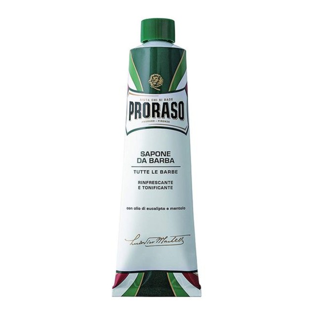 Proraso?s image is legendary, conveying Italian taste and the history of a brand synonymous of quality in the shaving world. Key Features: Green Refreshing And Toning: - Proraso's first line and still evergreen with renewed formula that stands out for the quality of it's ingredients, Refreshing and invigorating, it is suitable for all beard and skin types - With pleasant notes of menthol and eucalyptus. Shave Cream In A Tube: - Made with a "hot soap process", it's left to mature for 3 days - This produces an extremely fine, thick and creamy soap that, with the aid of a brush, produces a soft and rich lather Formula: - Combining the properties of Eucalyptus Oil and Menthol, the formula is designed to unite excellent smoothness with toning and a pleasant cooling effect. Directions: - Dampen your Proraso brush with hot water. Squeeze about 2cm of soap between the bristles of the brush and massage onto the face using circular movements. - In a few moments, the soap turns into a creamy and compact lather that will soften all kinds of beard, making shaving a pleasant daily activity What's in the box Proraso Refresh Shave Cream Tube 150ml