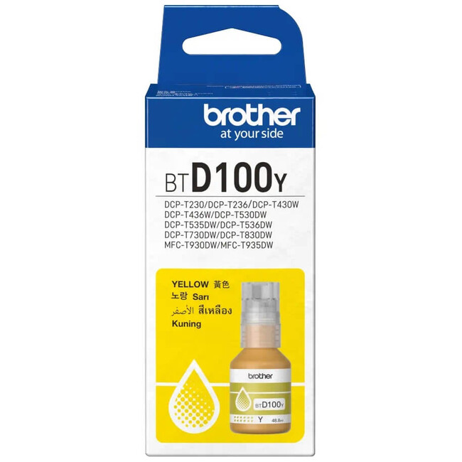 Product Information Genuine Brother BTD100Y Yellow Ink Bottle – Page Yield: up to 5 000 Pages, Compatible with Brother DCP-T530DW, DCP-T730DW, MFC-T930DW, DCP-T830DW&DCP-T430W Printers