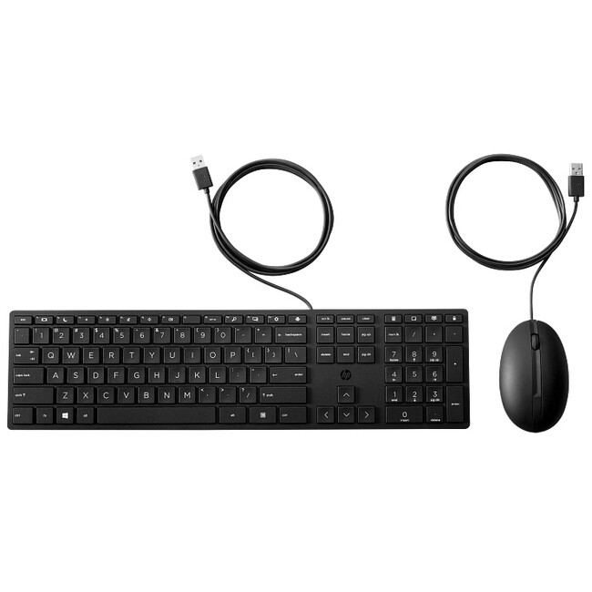 Product Information HP Wired Desktop 320MK Mouse and Keyboard (9SR36UT) - Connectivity: USB, Keyboard Type: Full size with numpad, Special keys: Copilot, Mouse; Buttons: 3, Cable length: 180cm (keyboard), 180cm (mouse)