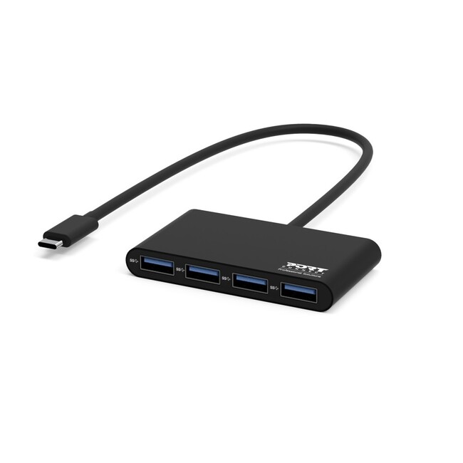 Product Information Port Connect USB Type-C Hub (900123) - Connectivity: 1 x USB-C Input, 4 x USB-A 3.0 (up to 5Gb/s) Out, Compatibility: Laptops, Desktops&Notebooks (Windows, Mac OS, Chrome OS&Linux) with USB-C, Cable Length: 30cm, Weight: 54g