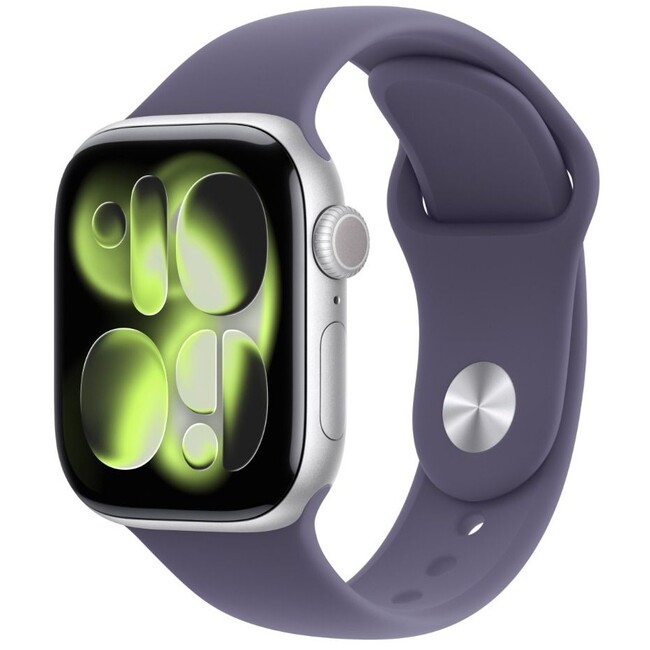 Apple Watch Series 11 GPS 42mm Silver Aluminium Case with Purple Fog Sport Band - M/L (MEU74AF/A) - Case Size: 42mm, Strap Size: M/L (130 â 200mm), Processor: S10 Chip with 64âbit Dual-Core Processor, Always-On Retina with OLED and LTPO Display, Connectivity: Wi-Fi 4 802.11n + Bluetooth 5.3, GPS, Sensors: Electrical Heart Sensor, Third-Gen Optical Heart Sensor, Ambient Light Sensor, Water Temperature Sensor, Depth Gauge and Depth App to 6m, Speaker Media Playback, Microphone with Voice Isolation, Always-on Altimeter, Compass, Waypoints, Backtrack, and Elevation view, High Dynamic Range Gyroscope, Compatible with Apple iPhone 17 Pro Max, iPhone 17 Pro, iPhone 17, iPhone Air, iPhone 16e, iPhone 16 Pro Max, iPhone 16 Pro, iPhone 16 Plus, iPhone 16, iPhone 15 Pro Max, iPhone 15 Pro, iPhone 15 Plus, iPhone 15, iPhone 14 Pro Max, iPhone 14 Pro, iPhone 14 Plus, iPhone 14, iPhone 13 Pro Max, iPhone 13 Pro, iPhone 13, iPhone 13 mini, iPhone SE (2022), iPhone 12 Pro Max, iPhone 12 Pro, iPhone 12, iPhone 12 mini, iPhone 11 Pro Max, iPhone 11 Pro, iPhone 11