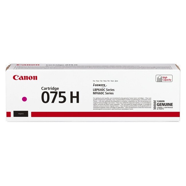 Product Information Canon 075H High Yield Magenta Toner Cartridge (6367C002AA) - Page Yield: up to 2500 pages, for use with Canon i-SENSYS MF664Cdw, MF667Cdw, LBP646Cdw and LBP647Cdw Laser