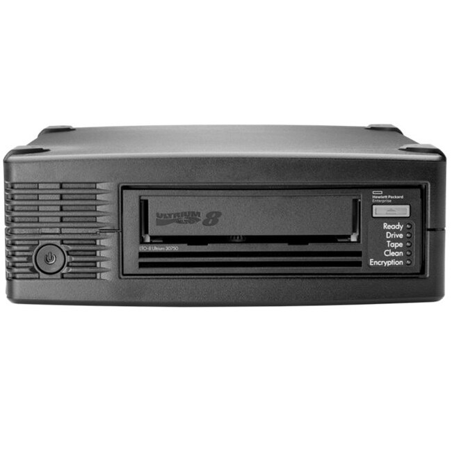 Product Information HPE StoreEver LTO‑8 Ultrium 30750 External Tape Drive (BC023A) - Recording Technology: LTO-8 Ultrium 30750, Capacity: 30 TB Compressed 2.5:1, Host Interface: 6 Gb/s SAS, Transfer Tate: 300 MB/s native maximum, WORM Compatible