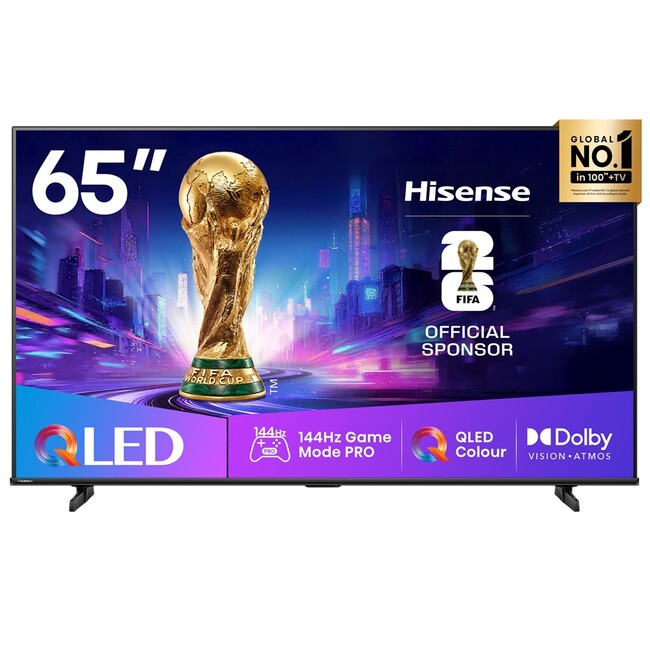 Hisense 65Q7Q 65-inch 4K UHD 144Hz VRR QLED Gaming TV - Resolution: 3840 x 2160, Contrast Ratio: 1300:1, Response Time: 8ms, Aspect Ratio: 16:9, Brightness: 350 nits, Refresh Rate: 144Hz, 10W Speakers, Installed Applications: Netflix, Youtube, Prime Video, Dual-Band Wireless 802.11 a/b/g/n/ac + Bluetooth 5.0, Connectivity: 4 x HDMI 2.0, 2 x USB 2.0, 1 x S/PDIF Output, 1 x Headphone Output, 1 x RF Tuner, 1 x AV Input, 1 x RJ-45, Adjustability: VESA 300 x 400mm